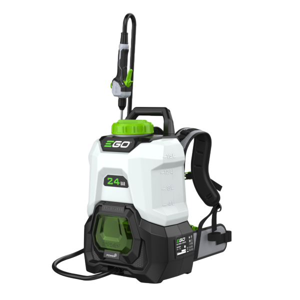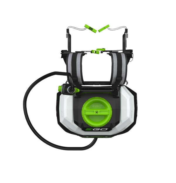 Opryskiwacz posiada 15‑litrowy, półprzezroczysty zbiornik umożliwiający łatwe monitorowanie poziomu cieczy oraz regulację przepływu bezpośrednio z uchwytu lancy, co zwiększa komfort i precyzję pracy. Ergonomiczna uprząż równomiernie rozkłada ciężar na plecach, a solidny gumowy wąż i stalowa lanca gwarantują trwałość i niezawodność użytkowania. Produkt zasilany jest akumulatorem z linii EGO Power+ 56 V (sprzedawany oddzielnie), zapewniając cichą pracę i brak emisji spalin.