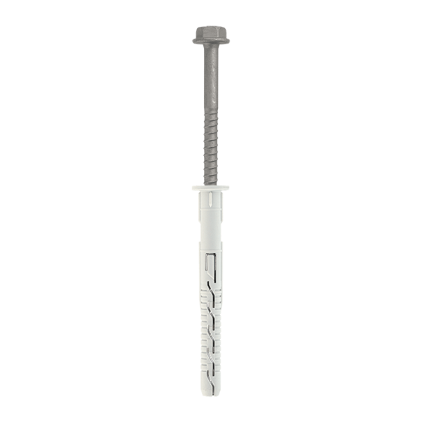 Kołek ramowy z wkrętem do trwałego mocowania elementów konstrukcyjnych i instalacyjnych w betonie, cegle i pustakach. Idealny do stolarki okiennej, drzwiowej, fasad, balustrad i innych mocowań.