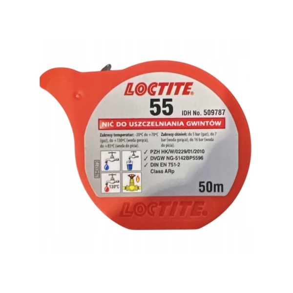 LOCTITE 55 został stworzony do zabezpieczania i uszczelniania połączeń gwintowych w metalowych i plastikowych instalacjach rurowych. Nie utwardza się, zapewnia natychmiastowe szybkie, łatwe i niezawodne uszczelnienie. Produkt posiada dopuszczenie DVGW/KTW do stosowania w instalacjach gazowych i z wodą pitną oraz atest NSF/ANSI, Standard 61.
