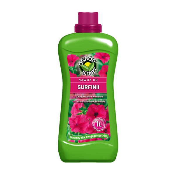 Nawóz do surfinii to specjalistyczny nawóz mineralny stworzony z myślą o surfinii oraz innych roślinach balkonowych o dużych wymaganiach pokarmowych. Zbilansowany skład dostarcza roślinom niezbędnych składników odżywczych, pomagając uzyskać obfite i długotrwałe kwitnienie, soczystą zieleń liści oraz silny wzrost pędów.