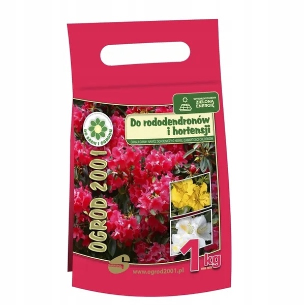 Nawóz do rododendronów i hortensji Ogród 2001 to specjalistyczny, granulowany nawóz przeznaczony do nawożenia rododendronów (różaneczników i azalii), hortensji oraz innych roślin kwaśnolubnych, takich jak wrzosy i azalie. Produkt zawiera wszystkie podstawowe makro- i mikroelementy w proporcjach dostosowanych do potrzeb tych gatunków, co wspiera intensywny wzrost, silny system korzeniowy i obfite, długotrwałe kwitnienie.