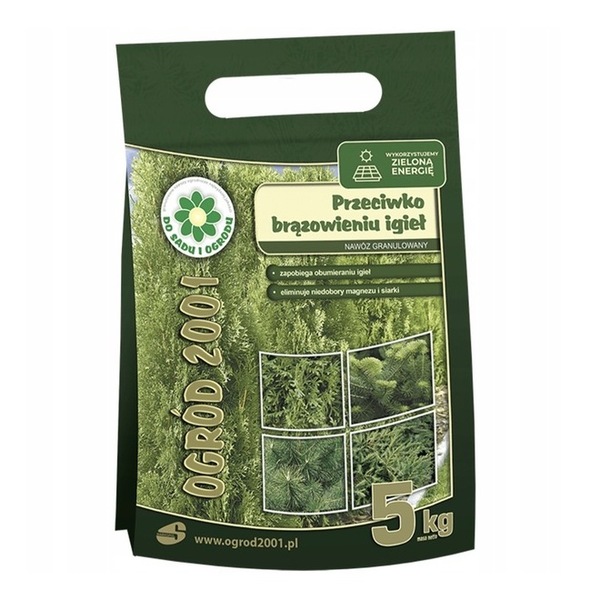 Nawóz Ogród 2001 przeciwko brązowieniu igieł to specjalistyczny, wieloskładnikowy nawóz ogrodniczy stworzony z myślą o pielęgnacji roślin iglastych. Formuła nawozu została opracowana tak, by zapobiegać brązowieniu igieł, wzmacniać naturalną zieleń oraz poprawiać ogólną kondycję roślin takich jak tuje, świerki, jodły i inne gatunki iglaste.