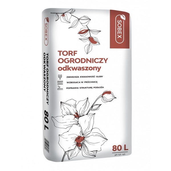 Torf ogrodniczy odkwaszony SOBEX to wysokiej jakości naturalne podłoże ogrodnicze na bazie torfu wysokiego z dodatkiem składników mineralnych zobojętniających, które sprawdza się jako baza do przygotowania podłoży dla wielu gatunków roślin. Dzięki optymalnemu odczynowi pH ok. 5,5–6,5 produkt jest odpowiedni do uprawy większości roślin ozdobnych, warzyw i trawników, zapewniając im korzystne warunki wzrostu.
