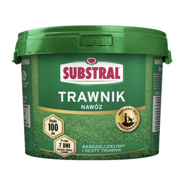 Nawóz Substral 100 dni. Nawóz długo działający do trawnika – działa 3 razy dłużej i wydajniej niż zwykły granulat. Odżywia trawnik codziennie przez 100 dni, wystarczą więc dwa nawożenia na sezon. Forma granulatu zapewnia stopniowe i równomierne dostarczanie trawnikowi składników odżywczych. Pierwsze efekty widoczne już w 7 dni.