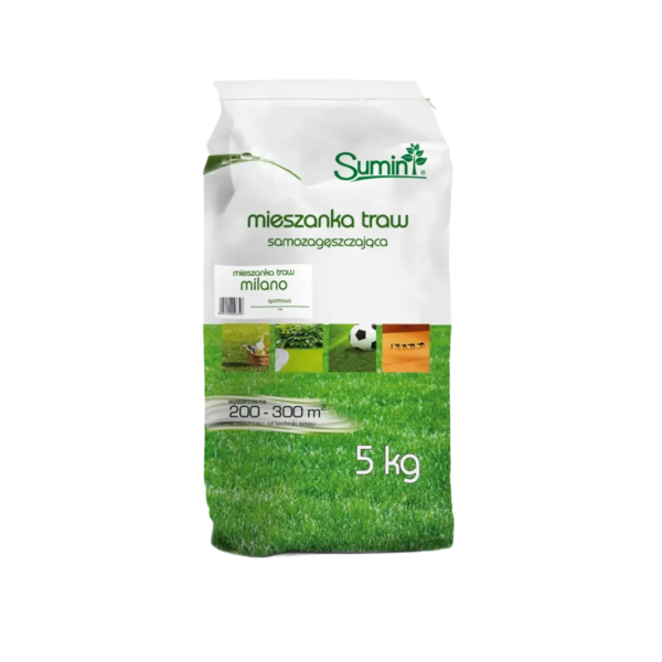 Trawa sportowa Milano Sumin to specjalistyczna mieszanka nasion traw, przeznaczona do zakładania trwałych, estetycznych trawników na terenach o intensywnym użytkowaniu, takich jak boiska, place zabaw oraz skarpy czy zbocza. Produkt tworzy gęstą, elastyczną i zwartą darń, która doskonale znosi duże obciążenia oraz mechaniczne użytkowanie, a także charakteryzuje się odpornością na niskie temperatury i wymarzanie. Dzięki właściwościom samozagęszczania murawa naturalnie domyka drobne ubytki, co ogranicza konieczność częstego dosiewania i renowacji trawnika. Mieszanka jest łatwa w wysiewie i pielęgnacji, a jej zielony, jednolity wygląd utrzymuje się przez długi czas, nawet przy intensywnym użytkowaniu.