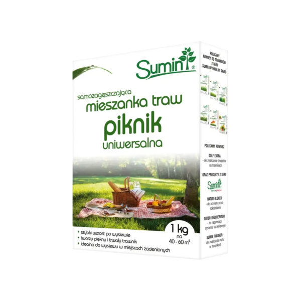 Trawa uniwersalna Piknik Sumin to wysokiej jakości mieszanka nasion traw, zaprojektowana z myślą o tworzeniu zdrowych, gęstych i dekoracyjnych trawników ogrodowych. Produkt jest idealny do standardowego użytkowania — zarówno jako trawa przydomowa, jak i zielona przestrzeń rekreacyjna do codziennych aktywności. Dzięki starannie dobranym gatunkom traw mieszanka szybko kiełkuje, tworząc równomierną i odporną darń, która dobrze znosi koszenie, umiarkowane deptanie oraz zmienne warunki pogodowe. Granulowana i dobrze wyselekcjonowana mieszanka sprzyja również silnemu systemowi korzeniowemu, co wpływa na trwałość murawy na dłużej.